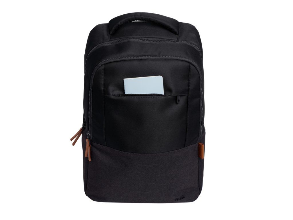 Trust Lisboa odolný černý batoh pro notebooky do velikosti 16” * prostorná polstrovaná vnitřní část s měkkou podšívkou umožňuje bezpečně uložit notebook * cestujte udržitelněji: textilie této tašky je vyrobena z 12 recyklovaných PET lahví - recyklovaný obsah 37% * pohodlné provedení s objemem 23l, měkkým zadním dílem a nastavitelnými nosnými popruhy z prodyšného síťového materiálu * odolnost proti nárazům a vlivům počasí, která vám umožní bezpečně přenášet věci bez ohledu na venkovní podmínky * 3 přihrádky s několika kapsami, včetně skryté vnější kapsy, usnadňují přepravu příslušenství, jako jsou telefony, nabíječky a tablety * batoh si můžete vzít kamkoliv s sebou díky popruhu, který se jednoduše připevní ke kufru