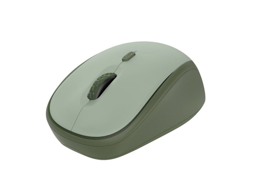 TRUST Yvi+ Tichá bezdrátová myš zelená Kompaktní bezdrátová myš s tichými tlačítky, vyrobena z 83 % z recyklovaných materiálů