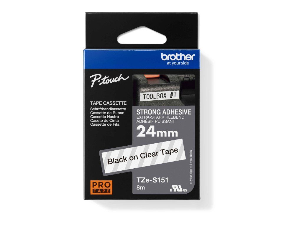 Originální kazeta s laminovanou páskou TZe-S151 kompatibilní s širokou řadou tiskáren Brother P-touch je zvláště všestranná díky své snadno čitelné černé a průsvitné barvě - ideální pro domácnost domácnosti, kancelář a další pracoviště. *Šířka 24 mm, délka 8 m *Vysoce kvalitní originální kazeta Brother *Zajistí trvanlivé, jednoduše čitelné výtisky Výsledné štítky mají NOVĚ vylepšené lepivé vlastnosti. Byly vyvinuty s důrazem na trvanlivost v extrémních podmínkách (aby odolávaly extrémním teplotám, slunečnímu záření, vodě, chemikáliím, oděru,....). Díky silnému lepidlu se štítky vyznačují extrémní přilnavostí a jsou ideální pro použití na zrnitých površích, jako jsou kovové skříně, strukturované plasty a další předměty bez hladkých povrchů. Drží třikrát větší silou (i na texturovaném povrchu) než standardní páska.