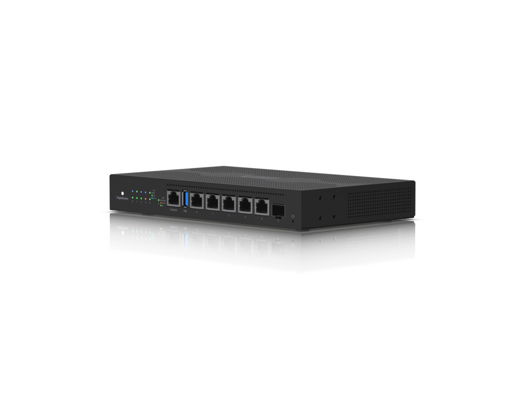 Popis produktu EdgeRouter 6P je 6portový Gigabitový router s 1SFP portem. I přes své kompaktní provedení dokáže přenést až 3,4 milionu paketů za sekundu. Průlomový poměr cena/výkon Přes svoji nízkou pořizovací hodnotu je router vybaven mnoha funkcemi díky operačnímu systému EdgeOS. Za zmínku stojí také výstupní POE na 5 ethernetových portech. Výstupní POE je pasivní 24V s možností volby napájení po 2párech (4,5+ 7,8-) nebo po všech 4 párech pro jednotky s vyšším odběrem, např. AirFiber X. Centrální management EdgeRouter 6P je možné spravovat online nástrojem UNMS (Ubiquiti Network Management System), velice obsáhlým controllerem s intuitivním uživatelským rozhraním. Z jednoho místa spravujete jednotky v rozlehlé síti. Více se dozvíte na webu UNMS, nebo můžete vyzkoušet Demo nástroje. Technické parametry Fyzické charakteristiky Provedení: Desktop Tlačítka: Reset Provozní teplota [°C]: -10 až 50 Hloubka [mm]: 136 Šířka [mm]: 229 Výška [mm]: 31 Hardware RAM [MB]: 1024 CPU: Quad-Core, MIPS64 Frekvence CPU [MHz]: 1000 Počet CPU jader: 4 Konektory a rozhraní Sériový port: RJ45 Rychlosti LAN: (5) 10/100/1000Mbps Gigabit LAN: Ano Rychlosti SFP/SFP+: (1) 1000Mbps Napájení Max. spotřeba energie [W]: 16 Typ napájení: DC konektor Typy PoE: Výstupní Napájení přes konektor/svorkovnici: 24V DC Software Operační systém: EdgeOS Podpora IPv6: Ano Výchozí IP adresa: 192.168.1.1 Výchozí jméno a heslo: Ubiquiti/Ubiquiti