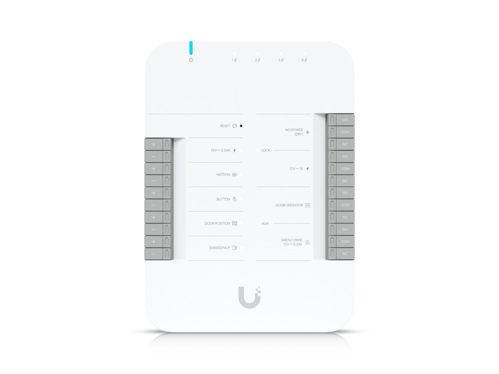 UniFi Access Door Hub jednodveřový IP kontroler * připojte a napájejte pomocí PoE++ * 3 napájené výstupní a 2 výstupní relé, pro větišnu zámků * 4 vstupní relé určené pro ovládání dveří (příchod, odchod, vzdálené otevření a snímač polohy dveří) * správa zařízení pomocí UniFi Access * použití pouze uvnitř
