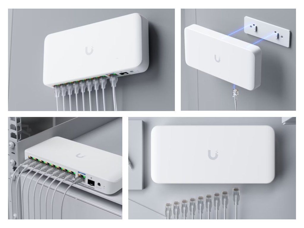 Ubiquiti UniFi Switch Flex Mini 2.5G 8 PoE Flexibilní switch nabízející osm 2,5 GbE RJ-45 PoE++ portů a jeden kombinovaný 10G RJ-45/SFP+ pro uplink