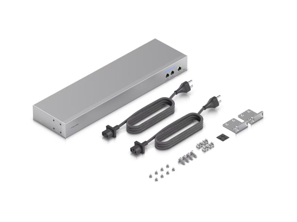 Obsah balení: * switch USW-WAN * 2x AC napájecí kabel * kit pro instalaci