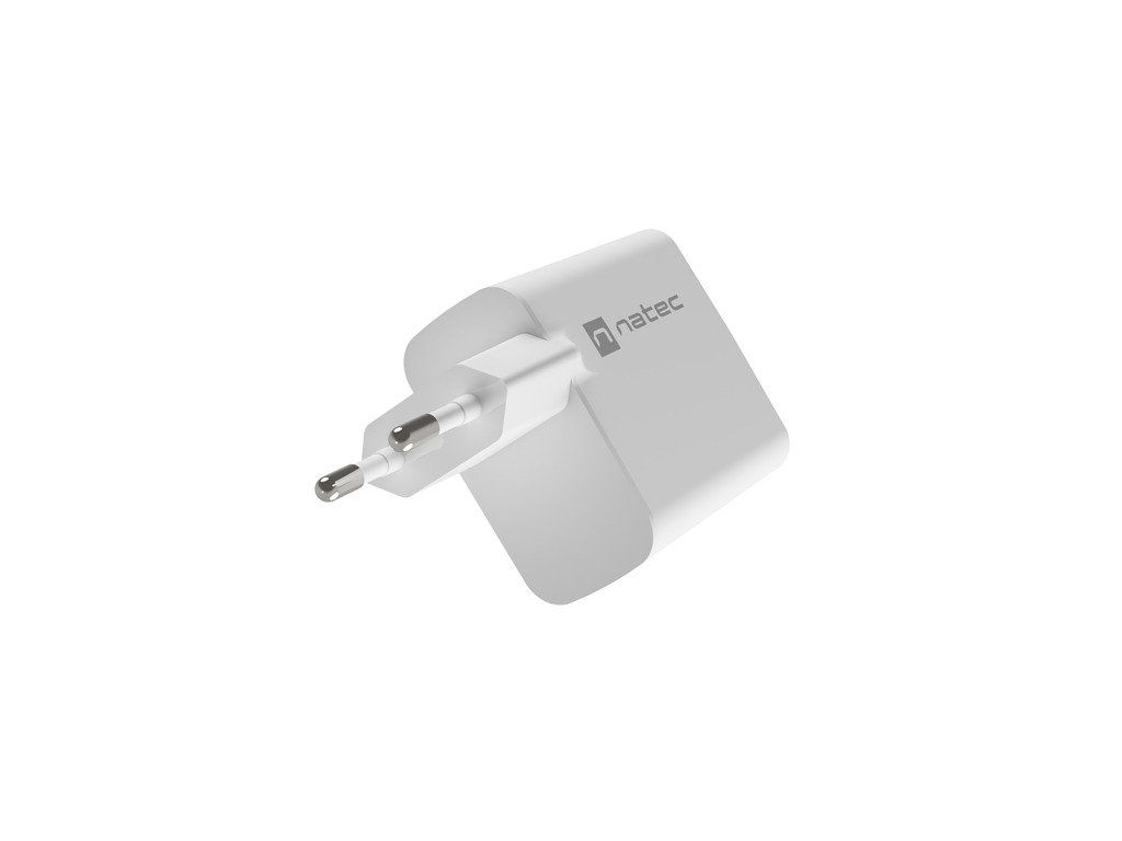 Univerzálna USB nabíjačka Natec RIBERA GaN 1X USB-A + 1X USB-C 65W, Biela