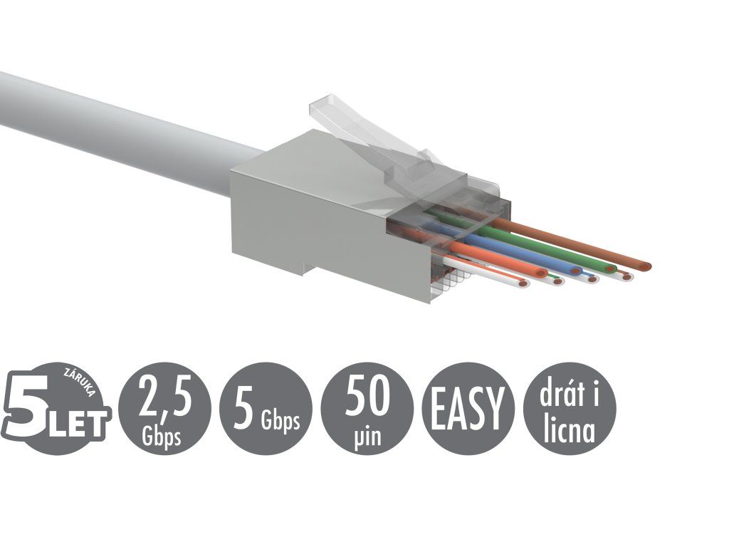 Univerzálny EASY konektor RJ45 CAT5E STP 8p8c na drôt aj licnu SXRJ45-5E-STP-EASY 100ks