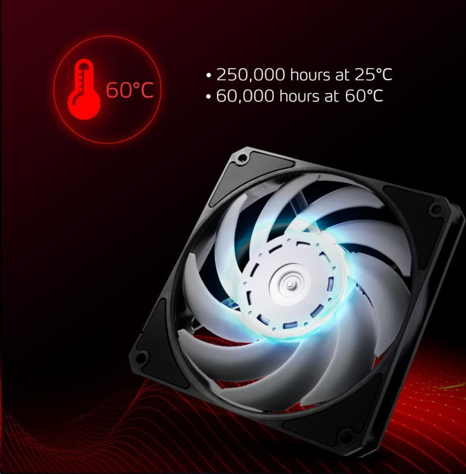 velmi přesnými dvojitými ložisky japonské kvality , které mu umožňují odolávat vysokému zatížení v prostředí s nejvyššími teplotami. Dvojitá ložiska rovněž fungují efektivněji a zaručují tiché otáčení a delší životnost. Ventilátor XPG VENTO PRO 120 PWM má vysoký