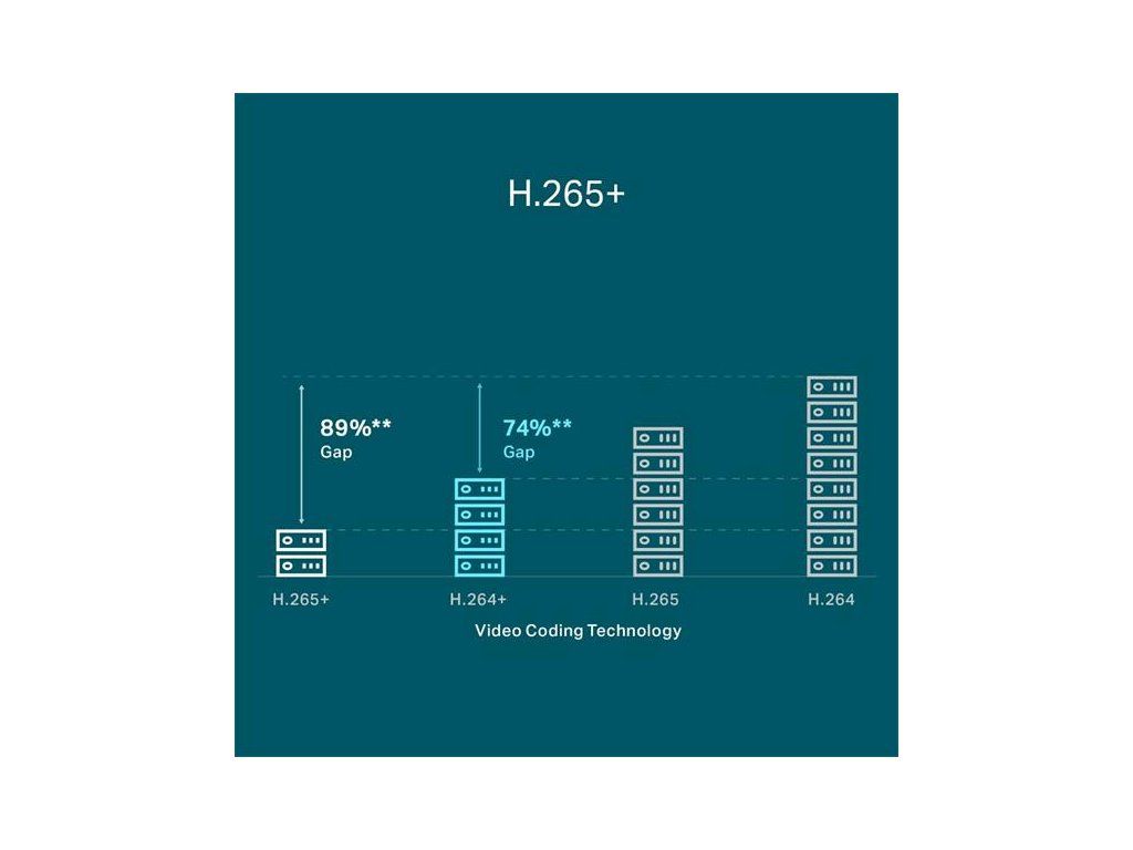 H.265+: Bez použitia ďalšej šírky pásma prenáša vaša kamera komprimované krištáľovo čisté video, čím šetrí miesto na disku, uľahčuje zaťaženie siete a znižuje náklady na monitorovanie bez zníženia kvality obrazu.