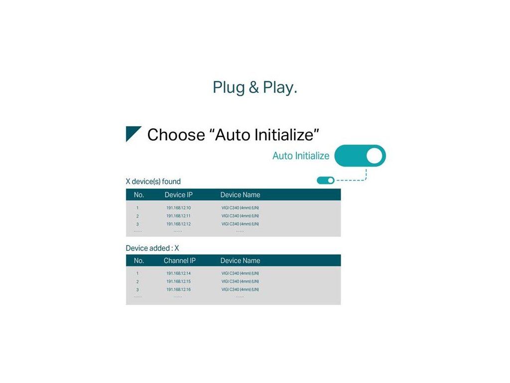 Plug & Play: Umožňuje automatické pridávanie nových a nepoužitých IP kamier VIGI do nového NVR a okamžitú aktiváciu, takže inštalácia je rýchlejšia ako kedykoľvek predtým.