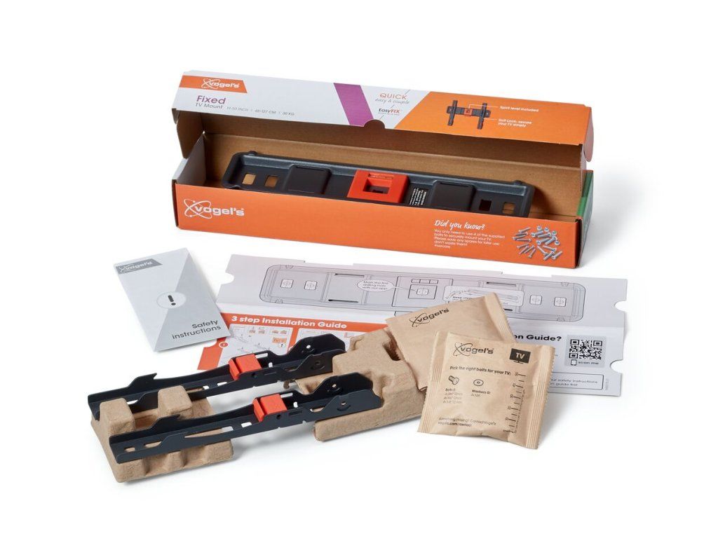Rychlá a snadná instalace Nástěnné držáky televizorů QUICK se velmi snadno a rychle instalují díky jedinečnému systému EasyFIX™. Televizor můžete na stěnu připevnit ve třech jednoduchých krocích a užívat si jej již během maximálně 20 minut. Součástí balení je vrtací šablona, šrouby a hmoždinky Fischer® DuoPower. Všechny kroky instalace jsou jasně a stručně vysvětleny v přiloženém rychlém návodu k instalaci. Podrobný návod k použití si můžete prohlédnout také online nebo se podívat na instalační video. S bezplatnou aplikací DrillRight™ AR si snadno vyznačíte první vrtací otvor na stěně. Pak stačí jen přiložit vrtací šablonu. Praktické také je, že váš nástěnný držák televizoru QUICK Fixed má zabudovanou vodováhu. Montáž televizoru do perfektní roviny je proto velmi snadná.