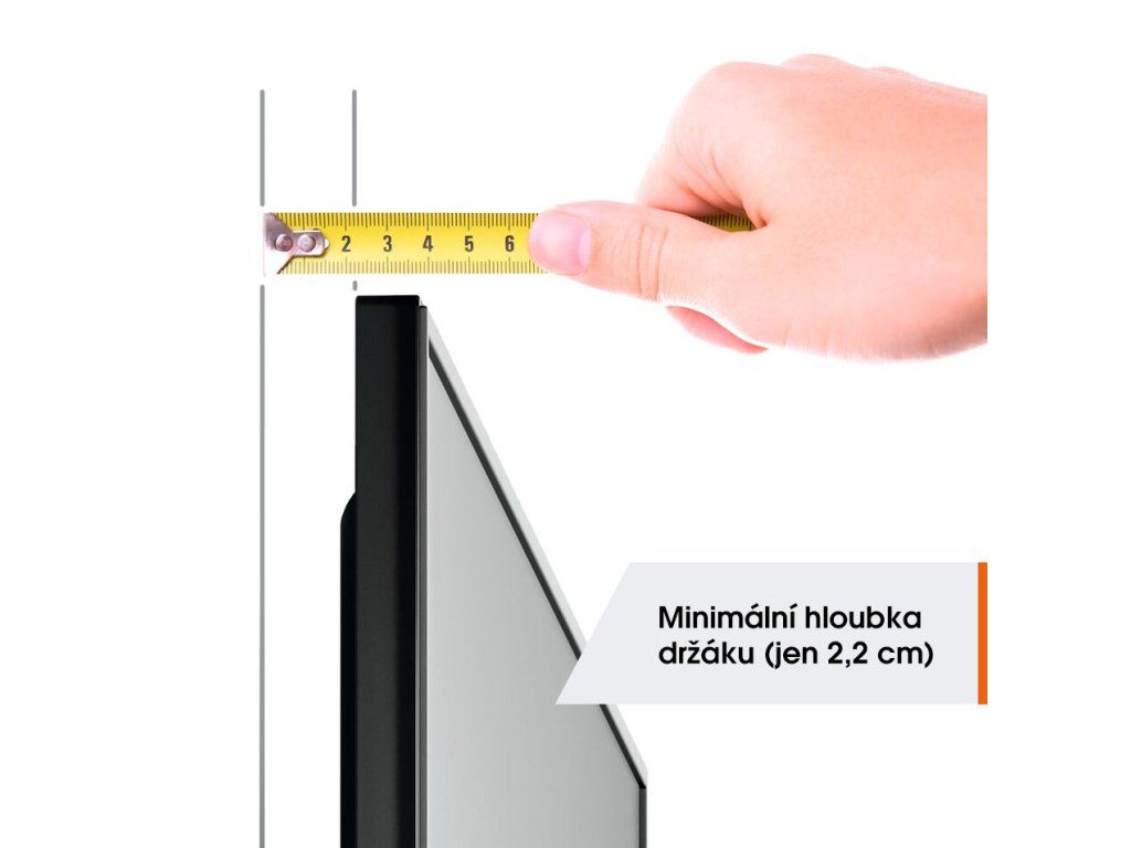 Nástěnný držák na plochý televizor s úhlopříčkou 32-77 palců Hledáte praktický nástěnný držák pro snadné a rychlé upevnění televizoru na stěnu? Sedíte vždy přímo před televizorem, takže se obrazovka nemusí otáčet ani naklánět? Pokud ano, je pro vás tento TV držák z řady QUICK Fixed ideální volbou. Je vhodný pro televizory s úhlopříčkou od 32 do 77 palců a hmotností do 50 kg. Mezi televizorem a stěnou je vzdálenost pouhých 2,2 cm.