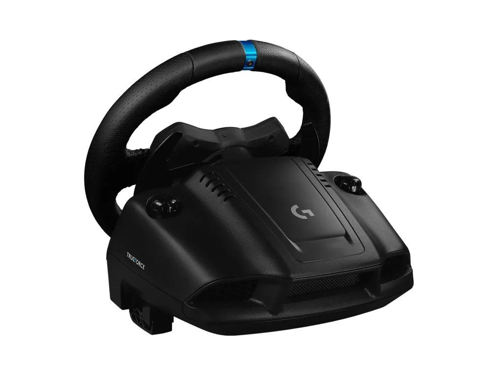 Logitech G923 TRUEFORCE Sim Racing Wheel * ovládací prvky pro PS5 nebo PS4 jsou integrovány přímo do volantu * volant z ručně šité kůže * integrované barevné indikátory LED označují rozsah otáček v podporovaných hrách * brzdový systém * pedály z válcované oceli