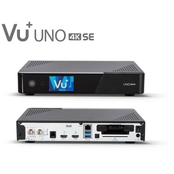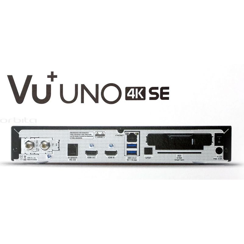 Prijímač má kvalitný LCD displej a signalizačnú LED diódu. Pre dekódovanie má na zadnom paneli zabudovanú jednu UNI čítačku dekódovacích kariet a jeden CI slot pre vloženie dekódovacieho CI modulu. K internetu môžete prijímač pripojiť vysokorýchlostným gigabitovým ethernetom, alebo kompatibilným wifi USB adaptérom (nemá zabudovaný interný wifi modul ako to bolo u modelu SOLO 4k). Pre pripojenie USB komponentov sú k dispozícii dva vysokorýchlostné USB porty 3.0 . K TV môžete prijímač pripojiť HDMI portom, alebo pomocou RCA Cinch kábla. Okrem HDMI výstupu má aj HDMI vstup, pomocou ktorého môžete k prijímaču zapojiť ďalšie zariadenie, napr. DVD, Bluray, alebo hernú konzolu. Pre vychutnanie priestorového zvuku má VU+ UNO 4K SE zabudovaný S/PDIF optický zvukový výstup.