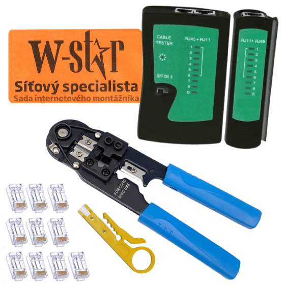 Popis W-Star Sada náradia pre sitárov WS140 tester RJ45, kliešte RJ45, stripovač, 10x RJ45
