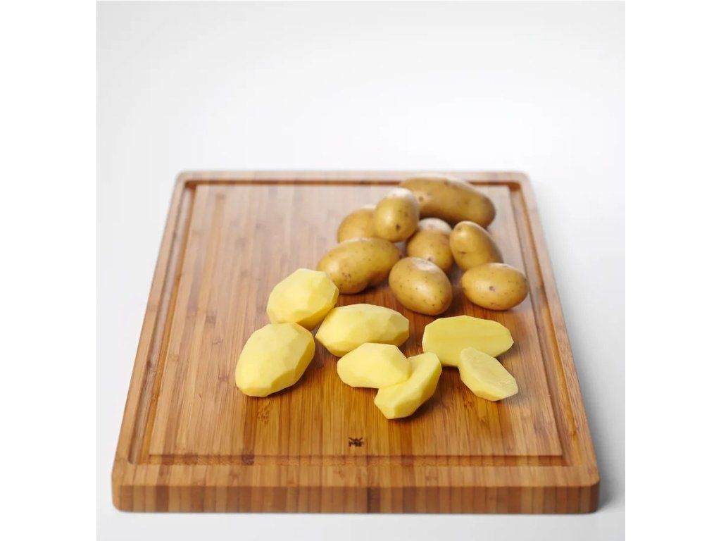 Prírodná elegancia a maximálna šetrnosť k vašim nožom. Veľká kuchynská doska WMF vyrobená z masívneho bambusu je ideálnym základom pre každodennú prípravu surovín. Vďaka svojej veľkosti poskytuje dostatok priestoru na krájanie aj následné štýlové servírovanie pokrmov.