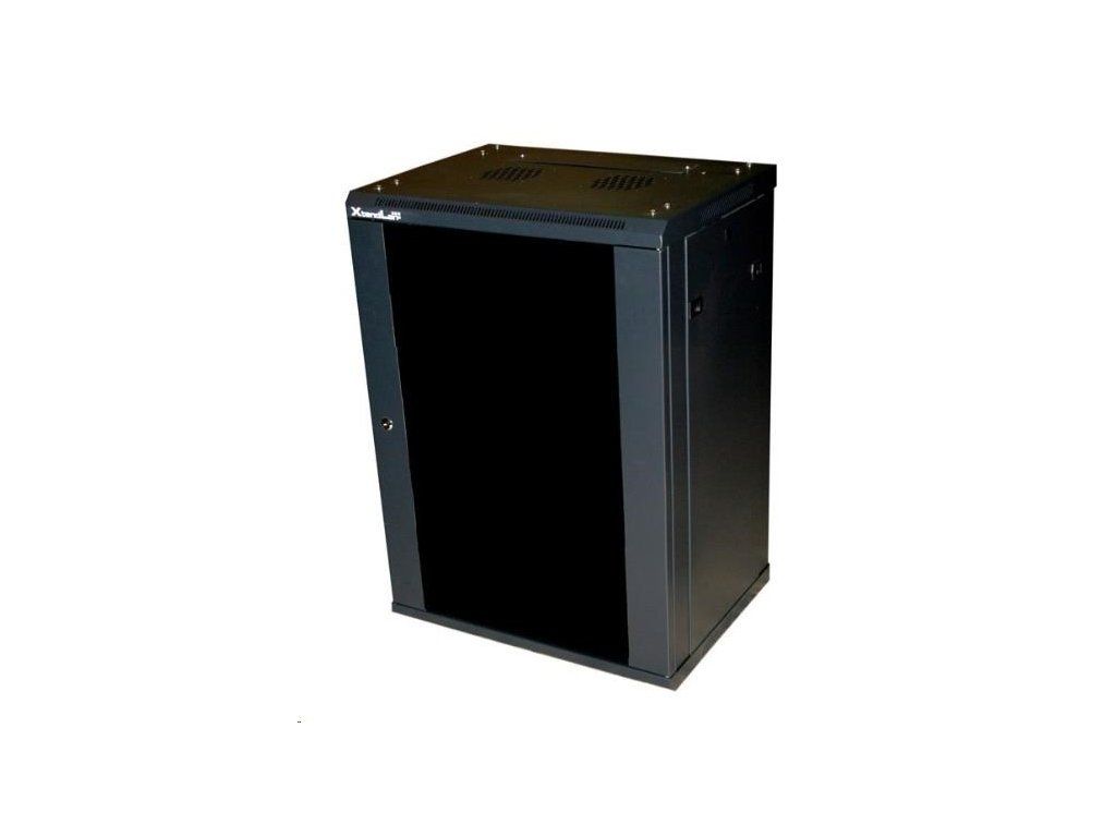 XtendLan 19" nástěnný rozvaděč 12U 600x450, nosnost 60 kg, skleněné kouřové dveře, svařovaný, černý