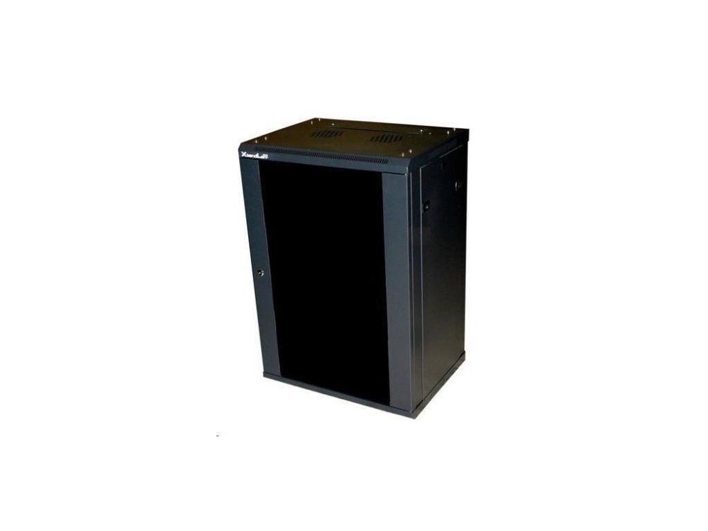 XtendLan 19" nástěnný rozvaděč 15U 600x450, nosnost 60 kg, skleněné dveře, svařovaný, černý
