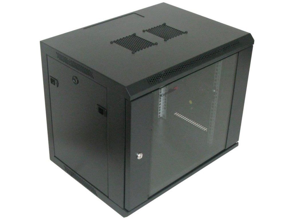XtendLan 19" nástěnný rozvaděč 9U 600x450, nosnost 60 kg, skleněné kouřové dveře, rozložený, černý