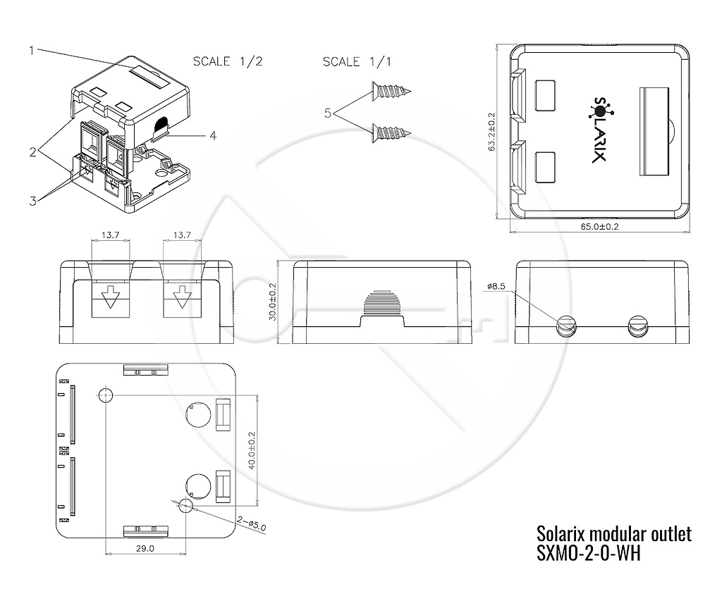 Solarix SXMO-2-0-WH Zásuvka modulární pro 2 keystony na omítku, bílá Vlastnosti * Modulární zásu