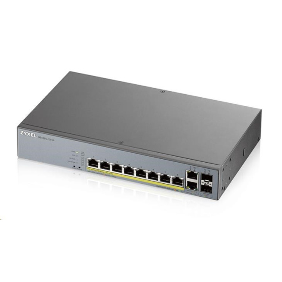 Popis Zyxel GS1350-12HP 12portový inteligentný spravovaný CCTV PoE switch, dlhý dosah, 130W, 10x GbE, 2x SFP
